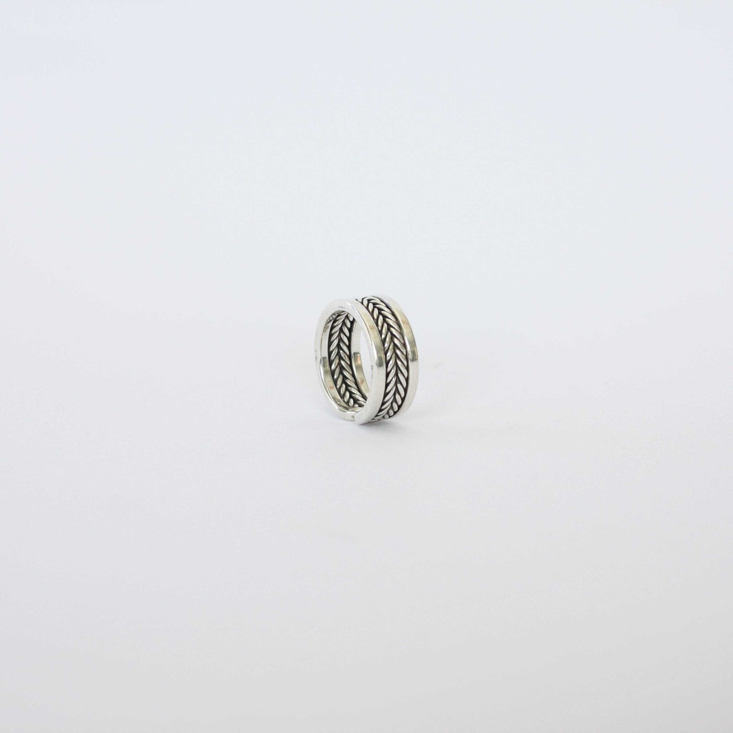 Ring met met getordeerd zilverdraad in visgraat patroon.