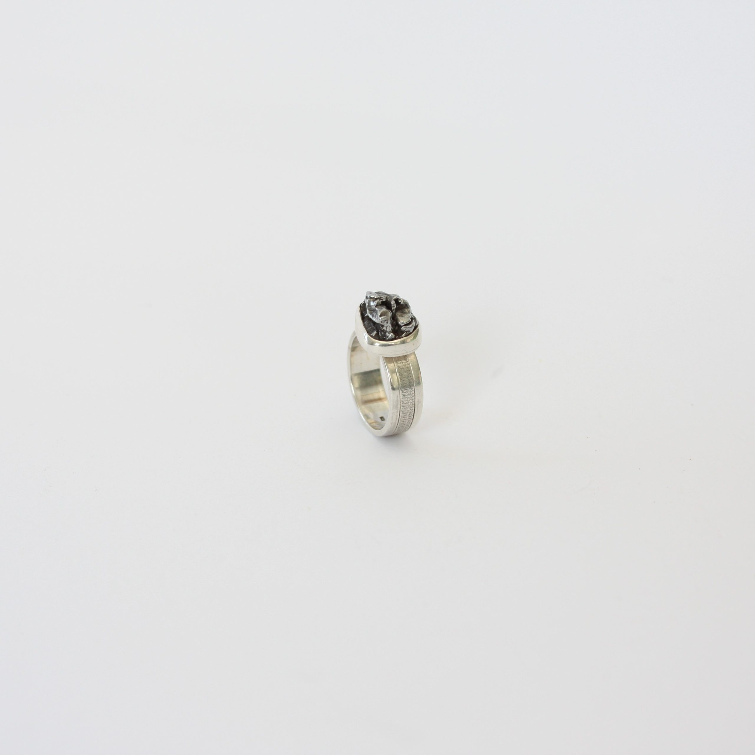 Zilveren ring met meteoriet. Ringmaat 53.