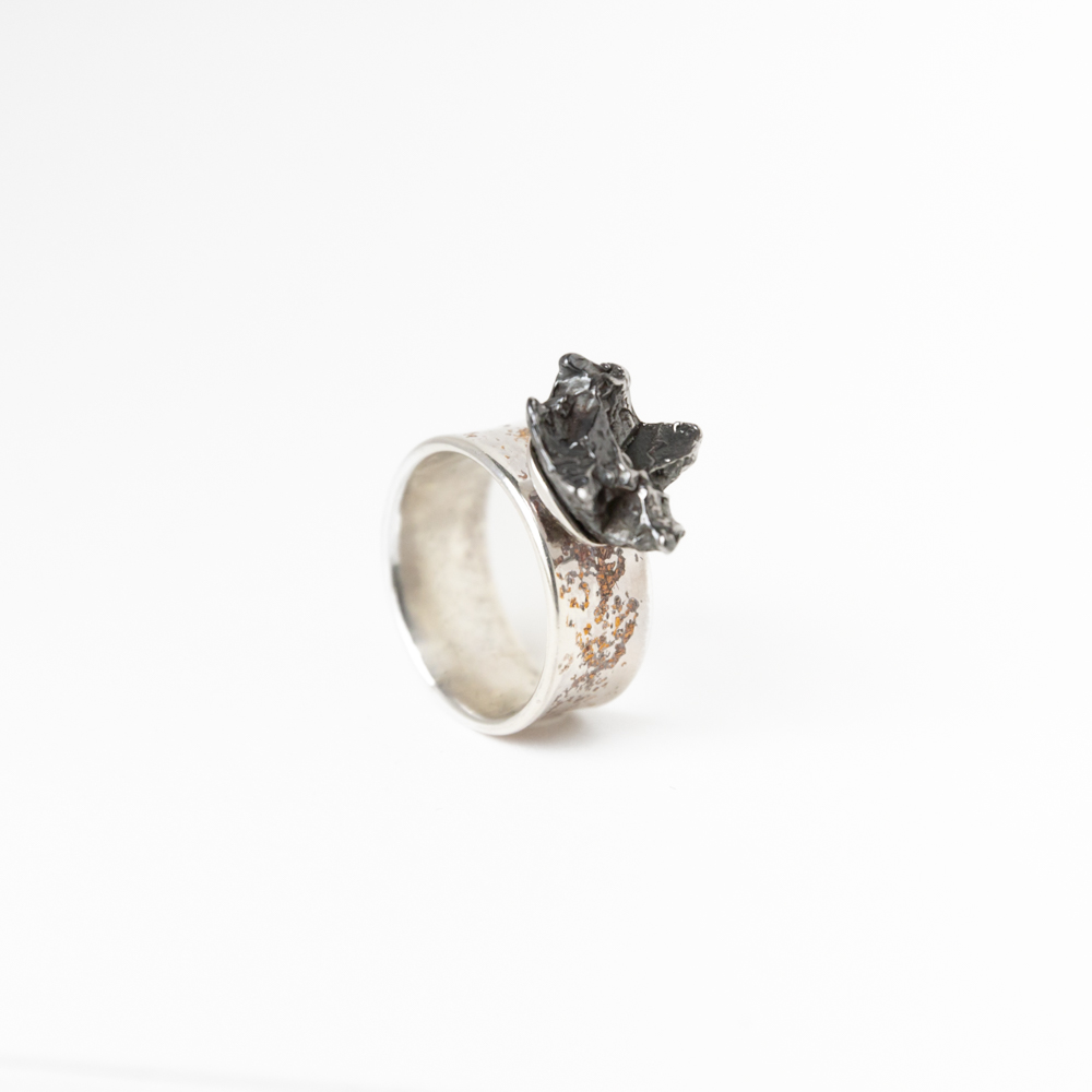 Zilveren ring met meteoriet en gesinterd brons. Ringmaat 58.