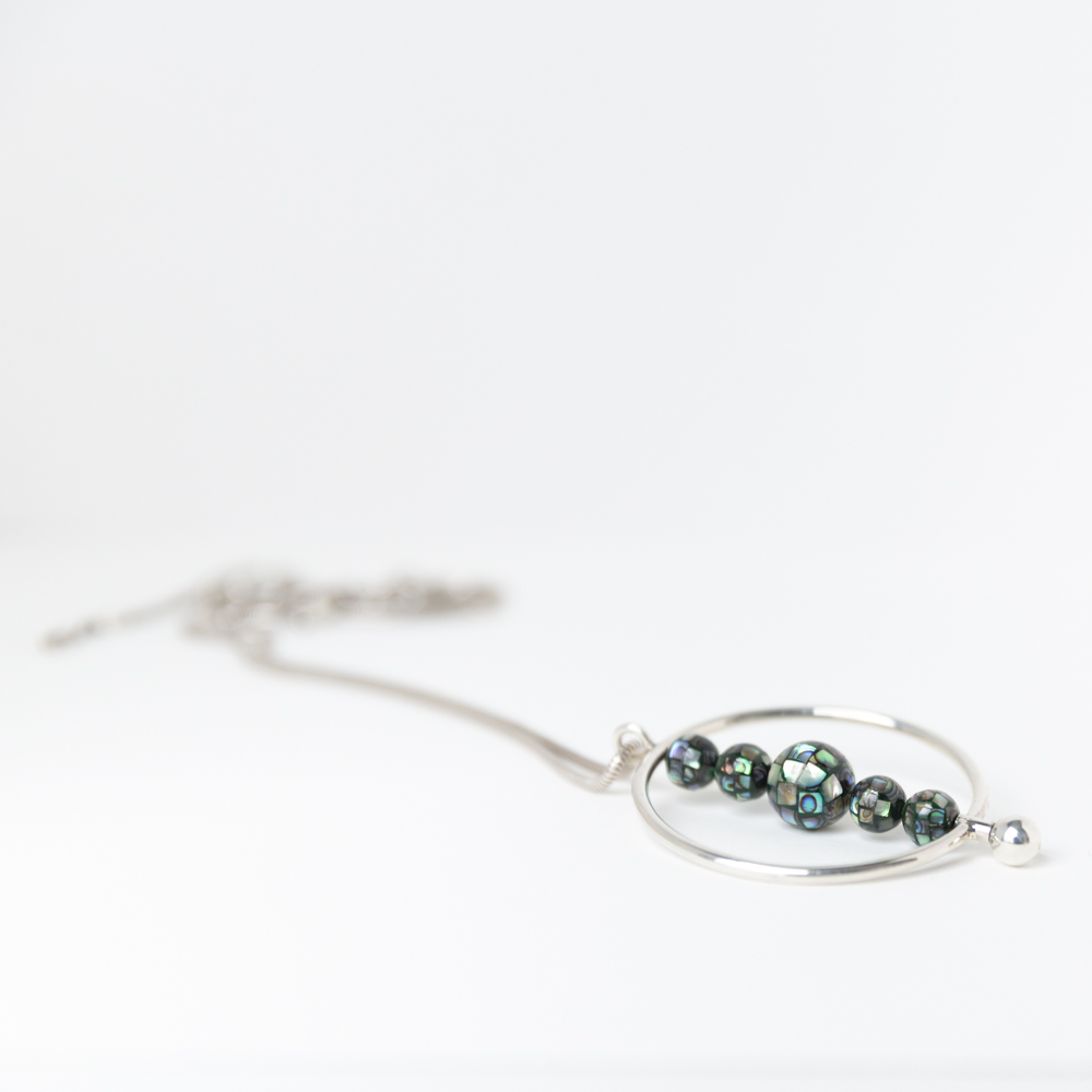 Skipti Cirkel ronde hanger met kralen van de Abalone schelp. 925 sterling zilver.