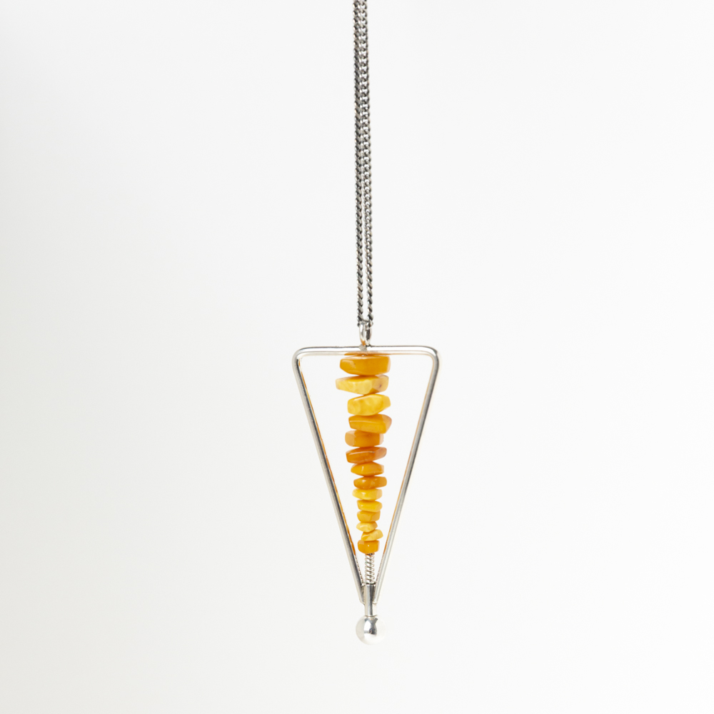 Skipti Triangel hanger met speels gestapelde fossiele Barnsteen die afkomstig zijn van een antiek collier. 925 sterling zilver.