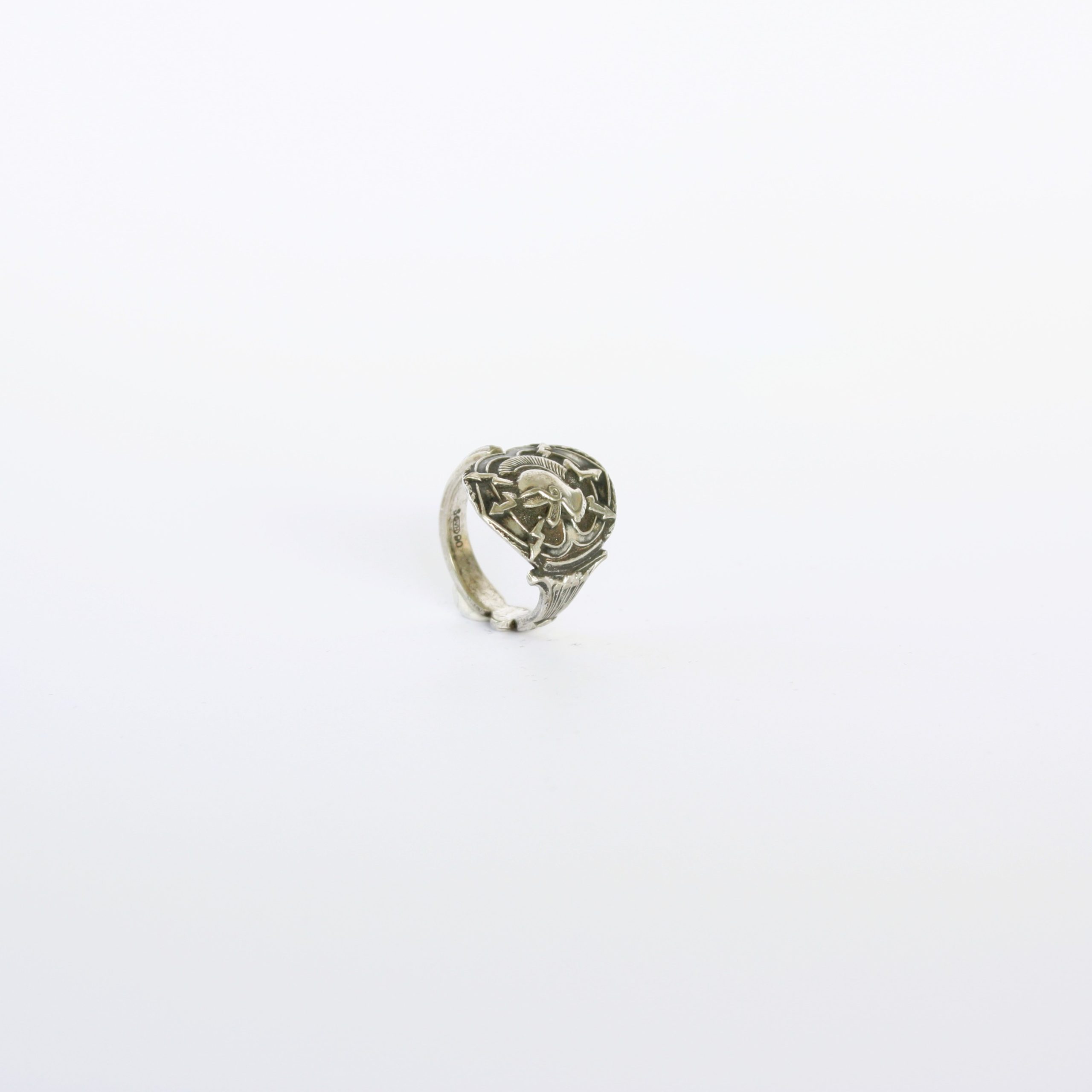 Lepelring met helm en blikemschichten. Ringmaat 56.